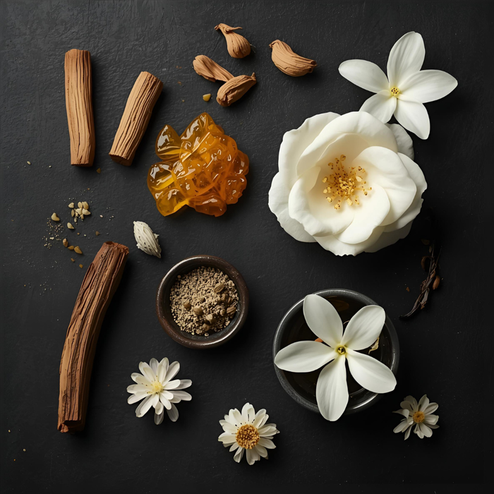 Basisnoten: Teakhout - Muskusachtige patchoeli - Romig sandelhout