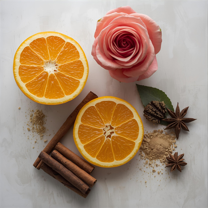 Hartnoten: Kaneel, Kruidnagel, Nootmuskaat, Roos